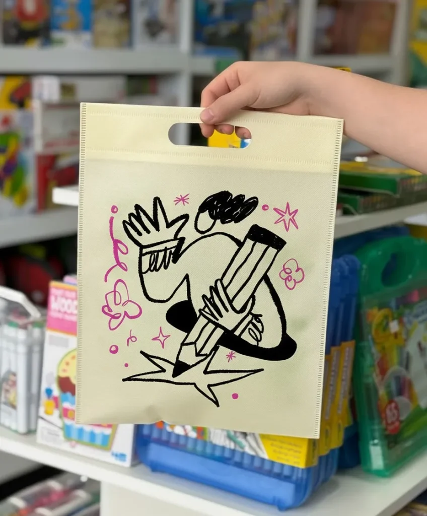 La bolsa de friselina con manija riñón (también llamada asas de cinta o tote bag) se distingue por sus asas largas y reforzadas, cosidas de forma independiente al cuerpo de la bolsa. Este diseño la hace ideal para la mano con mayor comodidad y capacidad de carga. Es la opción preferida para bolsas de compra reutilizables, ferias o como artículo de merchandising.